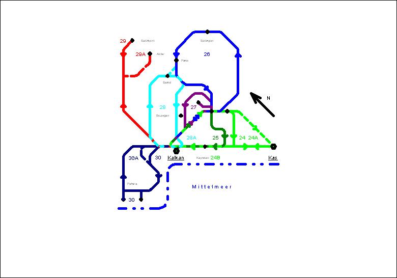 Kurzsteckbrief: (Tour 30) Kulturelle und antike Sehenswürdigkeiten als Ziele. (Tour 29) Eine Asphalttour zur bekannten Schlucht von Saklikent. (Tour 27, 28) Zwei kleinere Touren, dafür aber mit knackigem Singletrail. (Tour 26) Eine “Marathonstrecke”, die über einsame Pisten weit in das Hinterland führt. (Tour 25, 27, 28) Drei anspruchsvolle Singletrails, die einem wirklich alles abverlangen! (Tour 30) Eine spezielle Tour auf einem antiken Wassergerinne zur antiken Stätte Patara mit dem kilometerlangen Strand, wo Schildkröten ihre Eier ablegen (Bitte daher nur im gekennzeicheten Bereich betreten). (Tour 24) Eine Kombitour mit “Kas”. Viele Kombinationsmöglichkeiten.